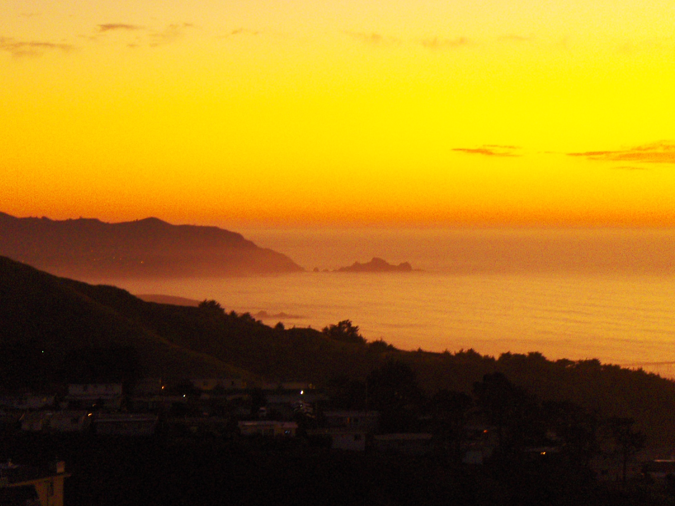 Sunset from Pacifica , Night view of the city , Fog waves near bridge