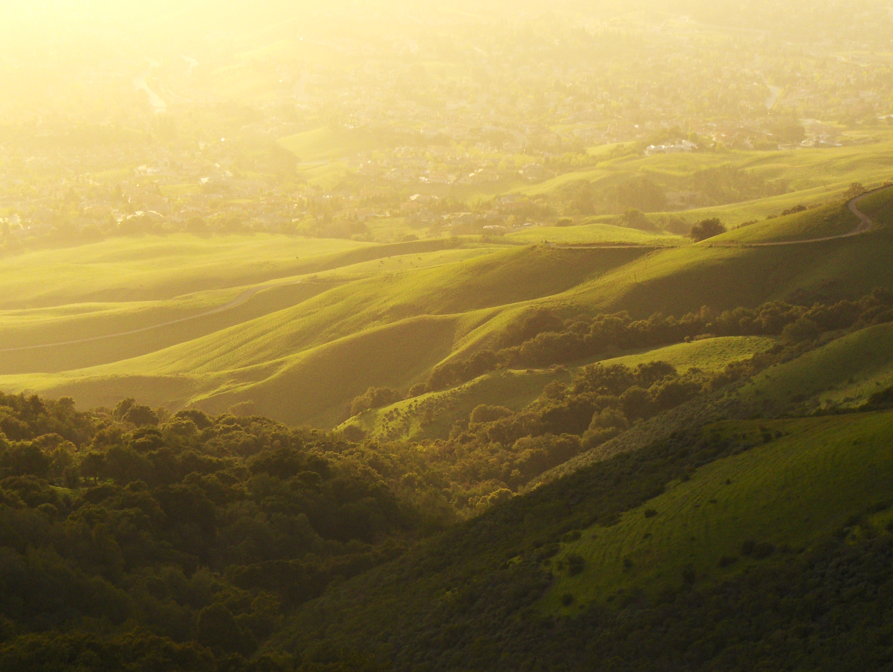 Sunset in east bay, Downtown Oakland, Hwy 84 in woodside,