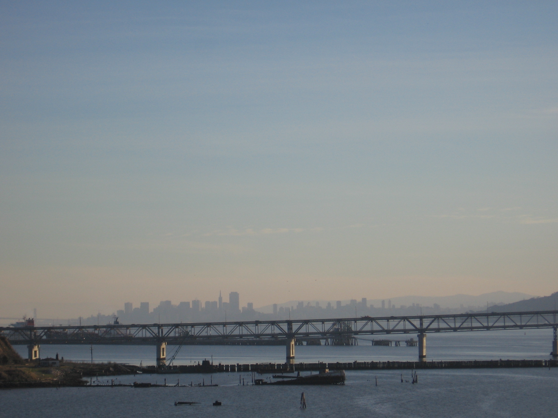 Downtown SF from I-80, Pt Bonica, Fog near bridge.