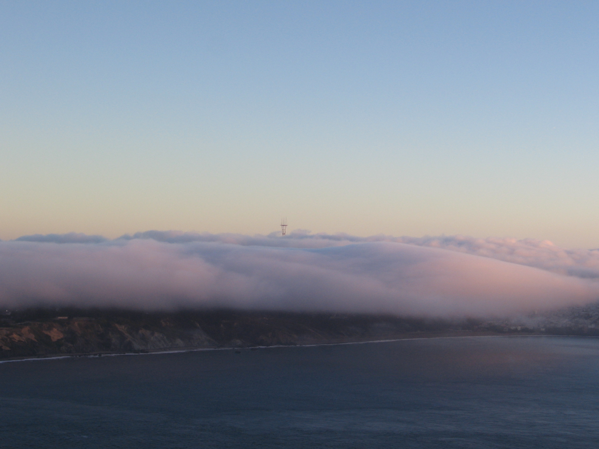 flood. The Fog is formed by hot weather from inland and cold water in Pacific Ocean and bay. You can see the fog most of afternoon or earlier
